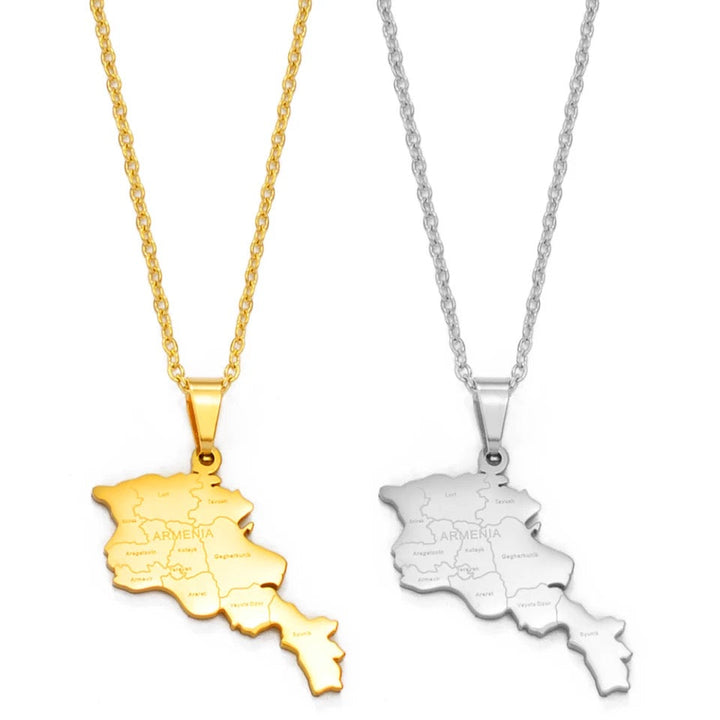 Plated jewelry with map of country.