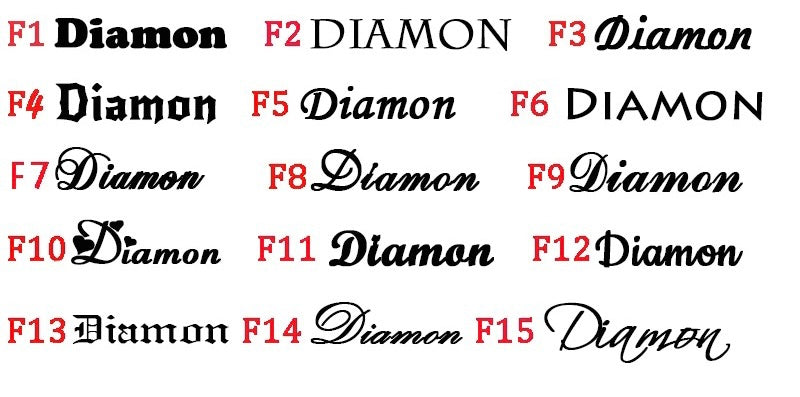 When ordering, please leave a message with which name(s) you want on the jewelry. Remember to be careful with the spelling and lowercase and uppercase letters. If you are wondering how your name looks in the different fonts, please email us.