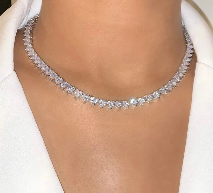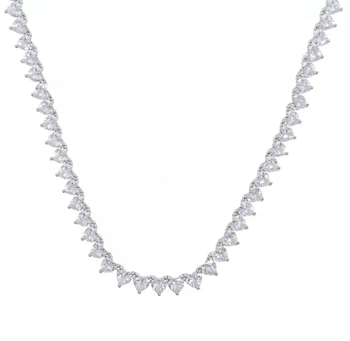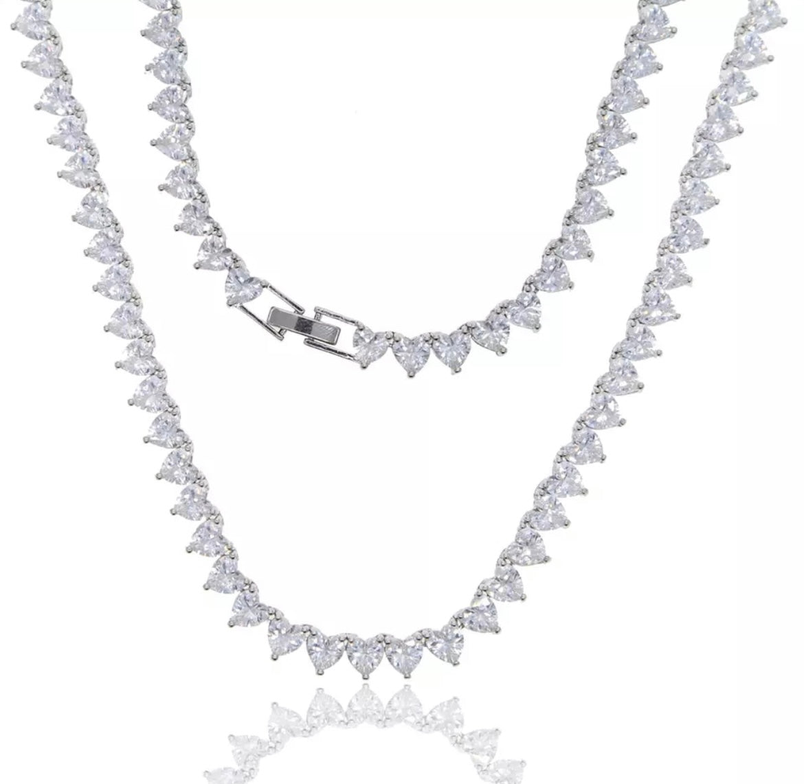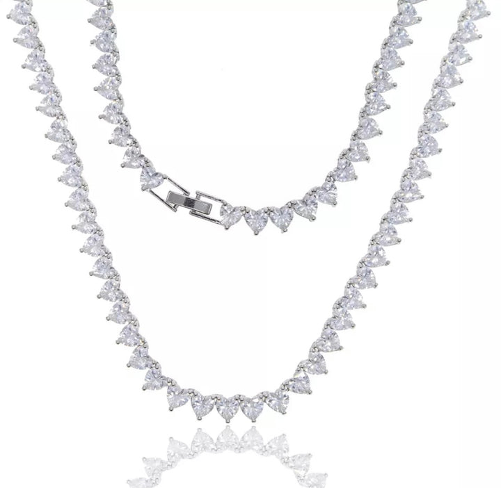Plated Tennis chain with heart-shaped Cubic Zirconia stones.