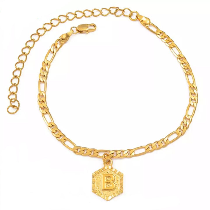 Gold-plated anklet with initial.