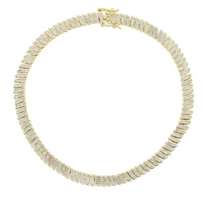 18K gold plated thick tennis chain with Cubic Zirconia stones.