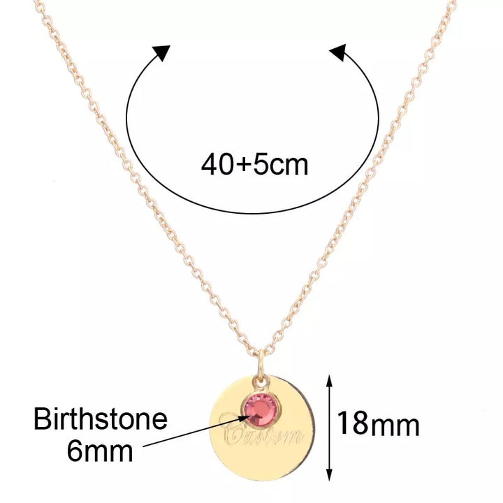 Personalized necklace with plate and birthstone, plated 18K in stainless steel.