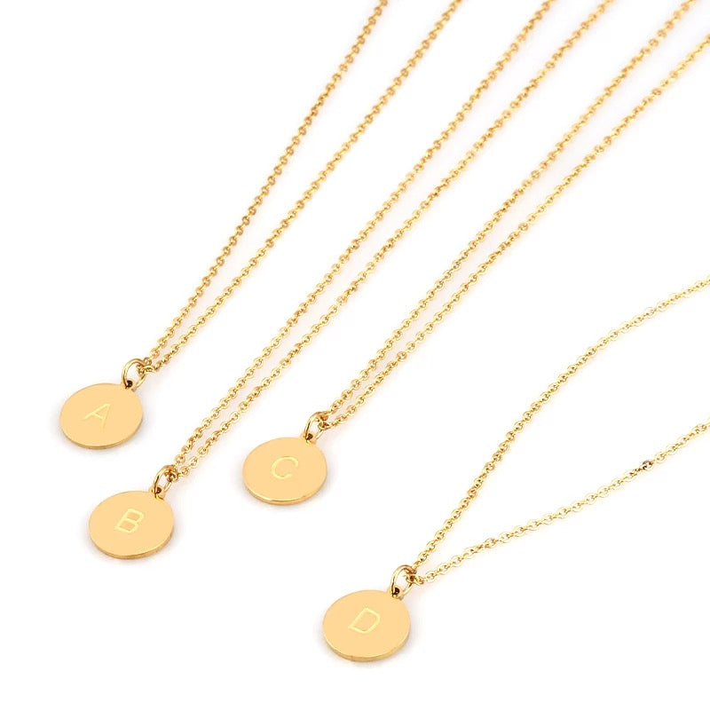 Personalized necklace with round plate, plated 18K in stainless steel.