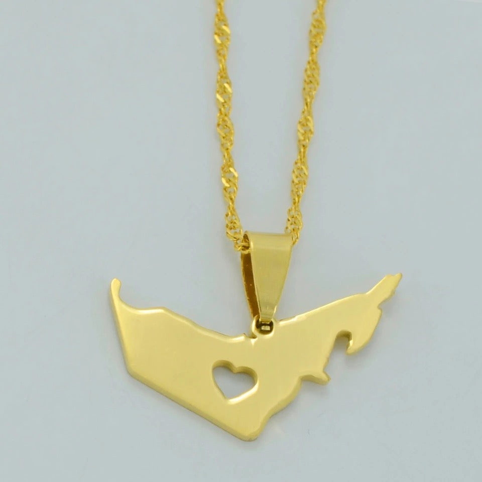 Plated jewelry with map of country.
